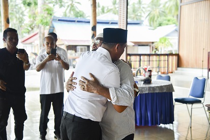 Kedua politisi yang pernah bertarung di pilkada tahun 2015 tersebut bertemu dengan momen mengharukan, dimana Sachrul sambil mencium tangan Sehan Landjar disambut dengan pelukan hangat dan didoakan agar sukses dan tetap amanah dalam memimpin Boltim.