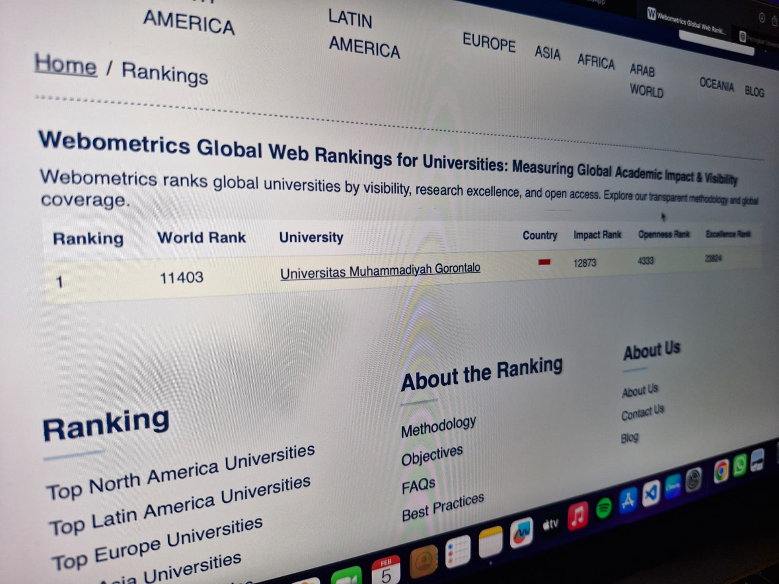 Webometrics sendiri merupakan lembaga pemeringkatan perguruan tinggi dunia yang menilai visibilitas web, keterbukaan publikasi ilmiah, dan keunggulan riset.
