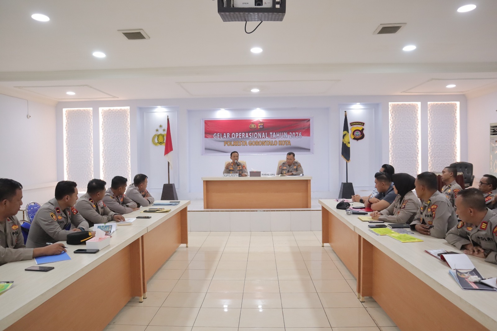 Redaksi Utama. Kota Gorontalo – Dalam rangka mengevaluasi situasi Keamanan dan Ketertiban Masyarakat (Kamtibmas) sekaligus memantapkan kesiapan pengamanan menjelang Bulan Suci Ramadan dan Hari Raya Idul Fitri 1447 Hijriah, Polresta Gorontalo Kota menggelar kegiatan Gelar Operasional Tahun 2026.