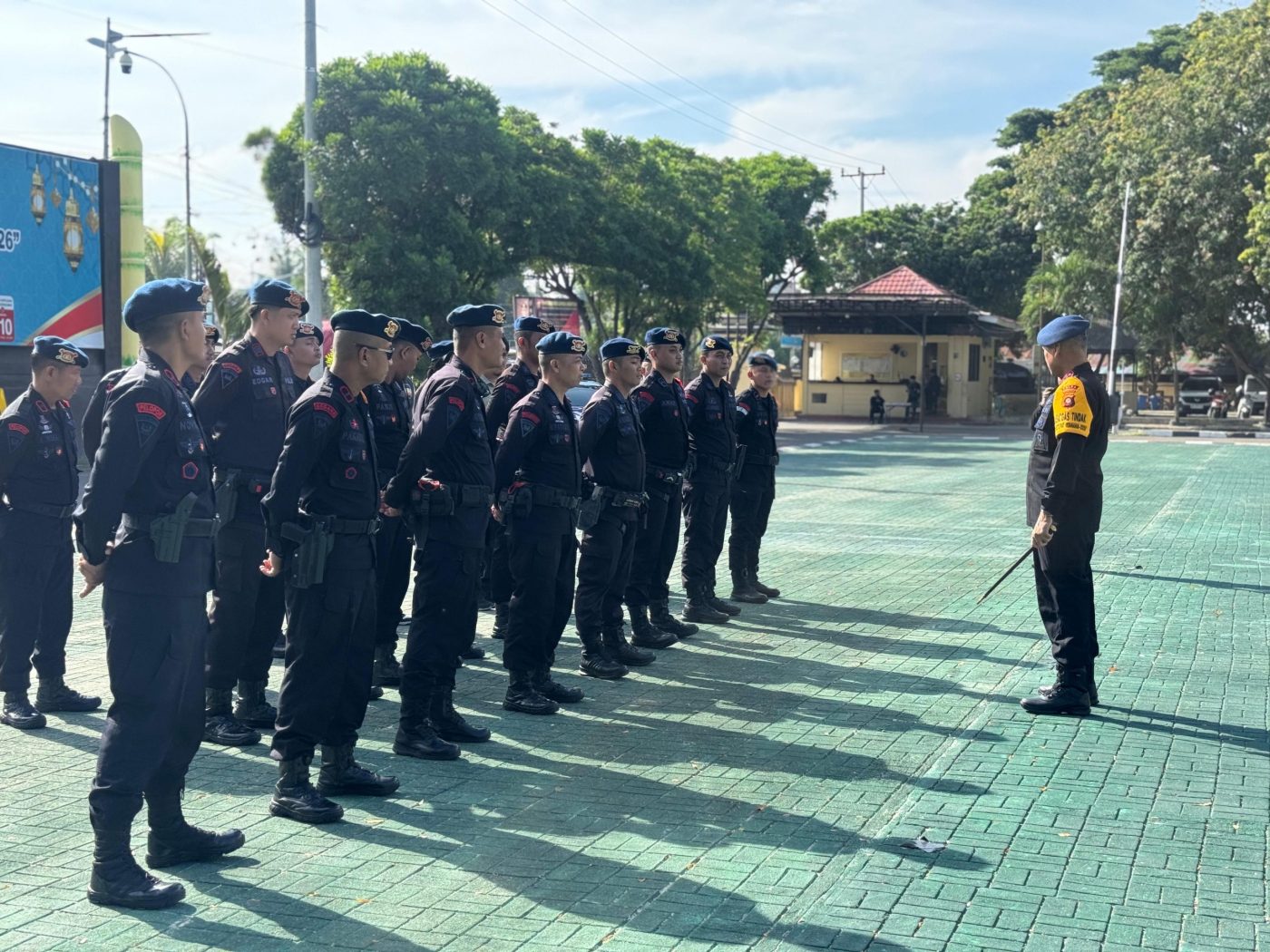 Tak hanya personel, deretan kendaraan dinas operasional juga tidak luput dari pemeriksaan detail. Kombes Danu mengecek langsung kondisi mesin dan kelayakan kendaraan agar siap digerakkan sewaktu-waktu jika terjadi dinamika di lapangan.
